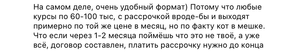 1 Ты можешь вернуть деньги если тебе не понравится в первые 2 недели, если побываешь на всех встречах **НО** зайти обратно можно будет только на сильно других условиях по цене и тарифу по сроку Выйти и зайти через месяцок не получится.